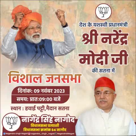 देश के यशस्वी प्रधानमंत्री आदरणीय श्री Narendra Modi जी "विंध्य के पावन भूमि सतना" पधार रहे हैं। इस अवसर पर आयोजित विशाल जनसभा के माध्यम से सतना जिले के समस्त जनता जनार्दन से संवाद करेंगे।