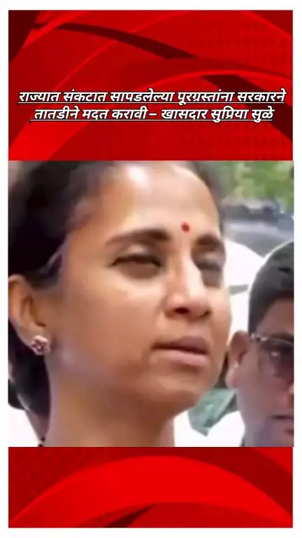 राज्यात संकटात सापडलेल्या पूरग्रस्तांना सरकारने तातडीने मदत करावी. अशी मागणी आज मंगळवार दिनांक ३० सप्टेंबर २०२५ रोजी सकाळी ११ च्या सुमारास शरद पवार पक्षाच्या राष्ट्रीय कार्याध्यक्ष व महासंसदरत्न खासदार सुप्रिया सुळे यांनी प्रदेश कार्यालय, मुंबई येथे पत्रकारांशी संवाद साधताना केली. पूरामुळे शेतकऱ्यांचे अतोनात नुकसान झाले असून, ही नियम आणि निकष लावायची वेळ नसून माणुसकी दाखवायची वेळ आहे. मला कळत नाही की सरकार एवढं हात राखून का वागत आहे.