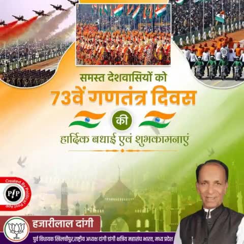 समस्त देशवासियों को 73वे गणतंत्र दिवस की हार्दिक बधाई एंव शुभकामनाएं। जय हिंद