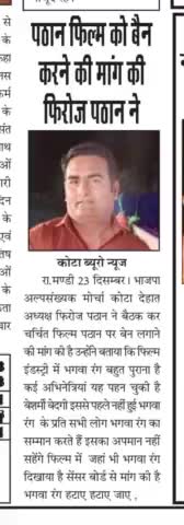 शाहरुख खान की पठान फिल्म को बेन किया जाए इसमें भगवा रंग की बेअदबी की है भारत में भगवा रंग करोड़ों लोगो की आस्था का प्रतीक है जय हिन्द