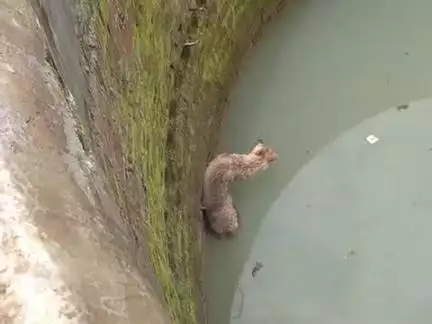 ग्राम फुलकोना के एक कुएं में फंसा मिला सियार