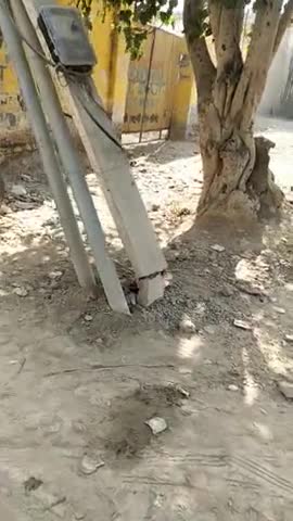 गंगानगर: ग्राम पंचायत 4 एमएल की मुख्य सड़क पर अज्ञात वाहन की टक्कर से टूटा विद्युत पोल