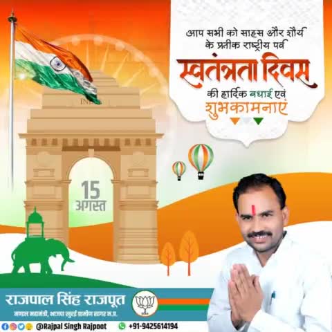 आप सभी को साहस और शौर्य के प्रतीक राष्ट्रीय पर्व स्वतंत्रता दिवस की हार्दिक बधाई एवं शुभकामनाएं। #स्वतंत्रता_दिवस