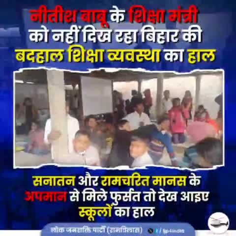 मुख्यमंत्री नीतीश कुमार जी के शिक्षा मंत्री को नहीं दिख रहा बिहार की बदहाल शिक्षा व्यवस्था का हाल , सनातन और रामचरित मानस के अपमान से मिले फुर्सत तो देख आईए विद्यालयों का हाल।
