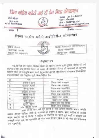 कोंडागांव विधानसभा कांग्रेस कमेटी आईटी एवं सोशल मीडिया विभाग के सभी नवनियुक्त पदाधिकारियों को हार्दिक बधाई एवं उज्जवल भविष्य की शुभकामनाएँ .. आशा है आप सभी नई जिम्मेदारी का पूरी निष्ठा से निर्वाहन करेंगे ।💐💐💐💐