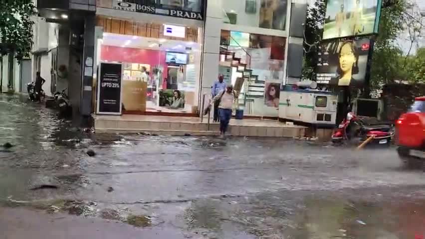 झांसी सदर बाजार अरोड़ा ऑप्टिकल के बाहर थोड़ी सी बारिश मैं स्थिति आपके सामने नगर निगम झांसी ध्यान दें