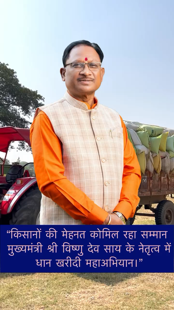 छत्तीसगढ़ के अन्नदाताओं को मिल रहा सम्मान… “मुख्यमंत्री श्री विष्णु देव साय के नेतृत्व में, धान खरीदी महाअभियान बना किसानों की समृद्धि का आधार।”