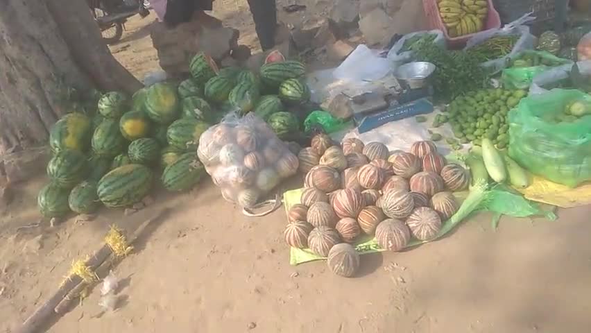 हलैना हाइवे पर सब्जी और तरबूज बेचता छोटा सा बच्चा
