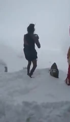 चुङधार में भारी बर्फबारी के बीच में बाबा जी बर्फीले पानी से स्नान करते हुए