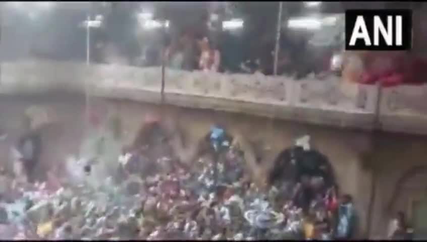 ब्रज में होली की धूम : बांके बिहारी मंदिर में होली खेलते हुए श्रद्धालुगण।