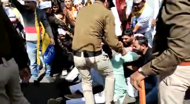 अडानी महाघोटाले के खिलाफ भोपाल में प्रदर्शन कर रहे AAP कार्यकर्ताओं को पुलिस ने किया गिरफ्तार।