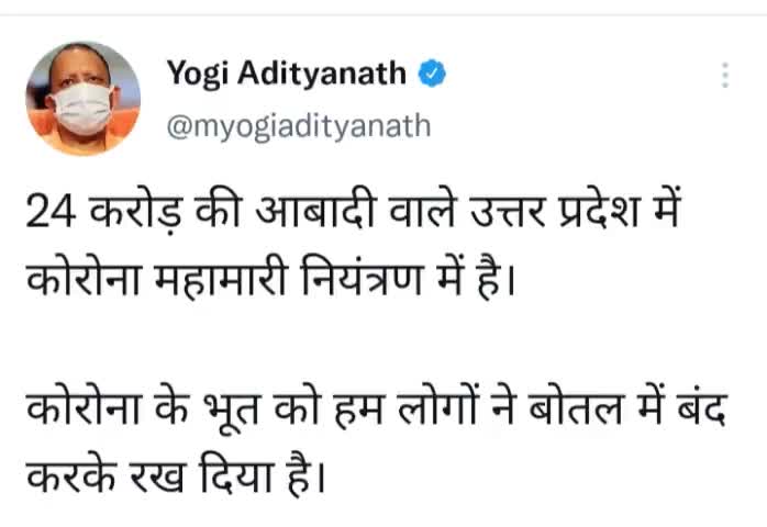 24 करोड़ की आबादी वाले उत्तर प्रदेश में कोरोना महामारी नियंत्रण में है। कोरोना के भूत को हम लोगों ने बोतल में बंद करके