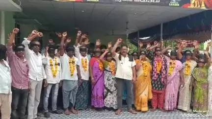 బౌడారాలో తమ భూములు తమకు అప్పగించాలని కళ్ళకు గంతలు కట్టుకుని జిందాల్ నిర్వాసితుల వినూత్న నిరసన