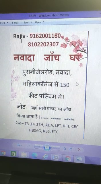 नवादा: NAWADA JACH GHAR . ALL TEST AVAILABLE. AT A LOW PRICE. Home Collection available. mo.9162001180