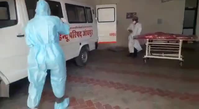 विश्व हिंदू परिषद जोधपुर में अंतिम संस्कार का उठाया बीड़ा एंबुलेंस में ले जाकर कार्यकर्ता कर रहे हैं अंतिम संस्कार