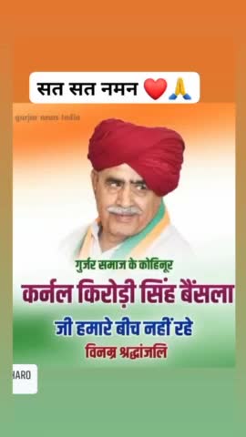 फरीदाबाद: श्री कर्नल किरोड़ी सिंह बैंसला जी हमारे बीच नही रहे , विन्रम श्रद्धाजलि #gurjar