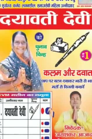वीरपुर नगर पंचायत वार्ड नंबर 13 के प्रत्याशी मेरी मां श्रीमती दयावती देवी का चुनाव चिन्ह कलम और दवात क्रमांक संख्या 01 पर बटन दबाकर भारी मतों से विजय बनावे Birpur Supaul