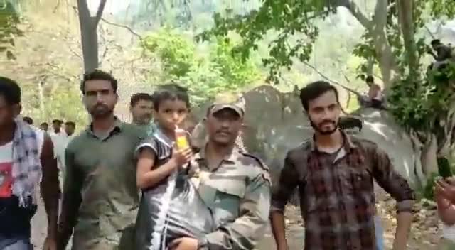 रोपवे हादसा.देवघर सेना के गोद में देखिए बच्चे के चेहरे पर एक सुकून भरी मुस्कान हाथ में जूस का टेट्रा पैक और राहत भरी सांस।