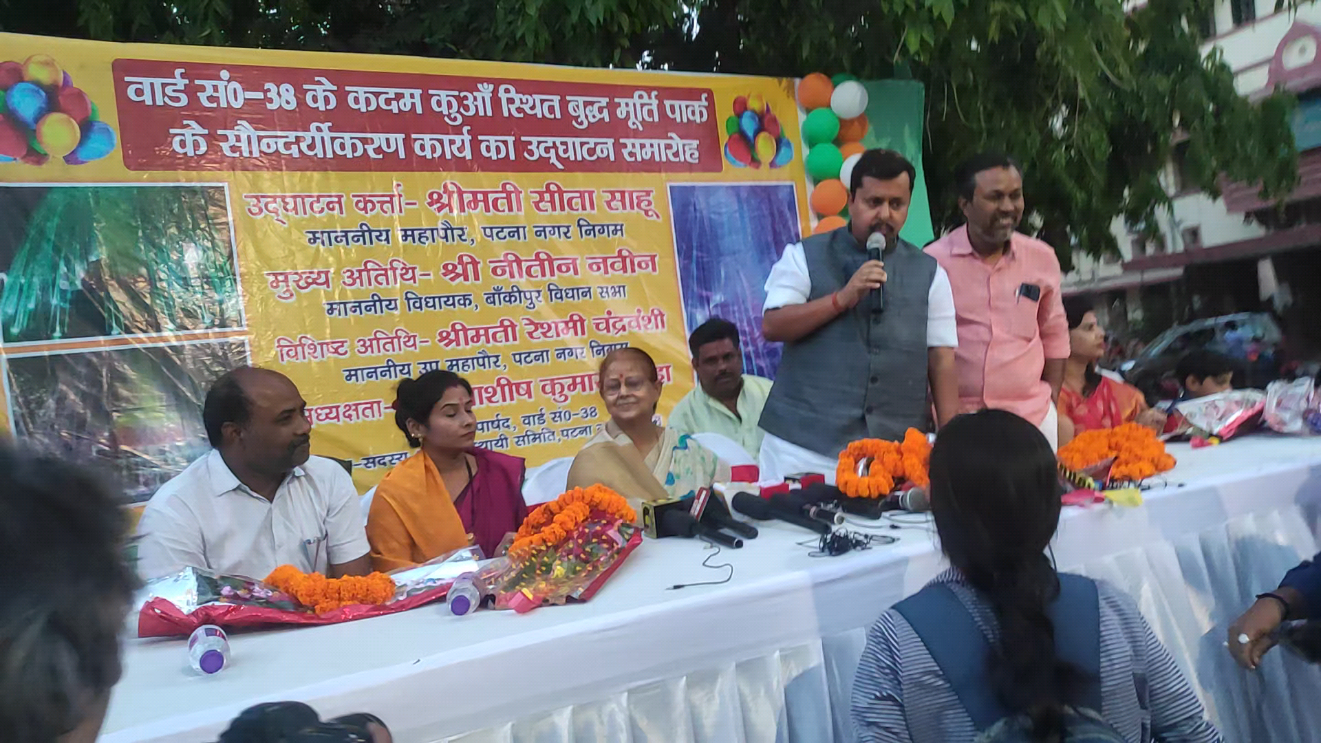 पटना के वार्ड-38 बुद्धमूर्ति का सौंदर्यीकरण उद्घाटन समारोह महापौर सीता साहू स्थानीय विधायक नितिन नवीन द्वारा संपन्न हुआ।