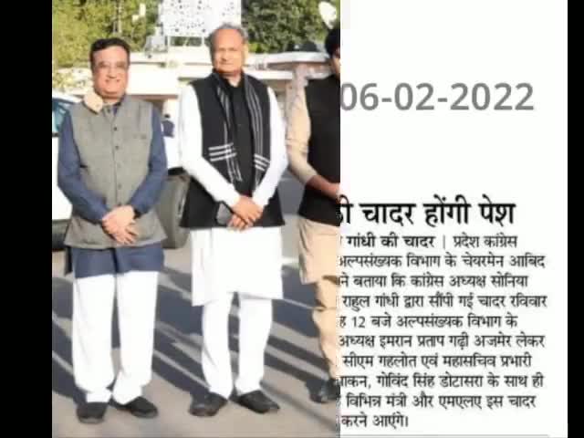 6 फरवरी को कांग्रेस की राष्ट्रीय अध्य्क्ष श्रीमती सोनिया ग़ांधी जी और राहुल ग़ांधी जी की चादर गरीब नवाज के दरबार मे पेश की