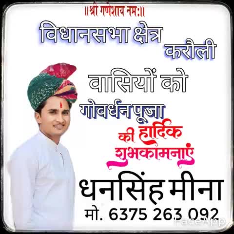 विधान सभा क्षेत्र करौली वासियों को गोवर्धन पूजा एवं भाईदूज की हार्दिक शुभकामनाएं। धन सिंह मीणा परीता चिन्ह टेलीफोन 👈🙏
