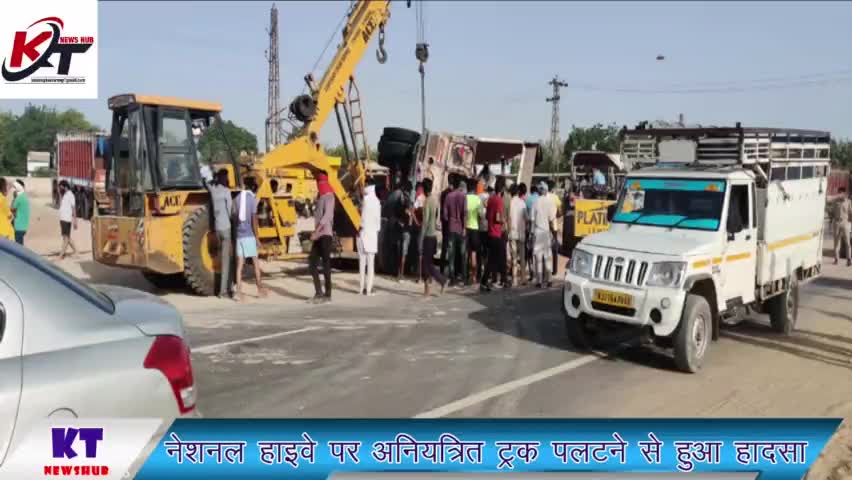 नेशनल हाईवे पर ट्रक के पलटने से हुआ हादसा हादसे में युवक की मौके पर ही मौत मौके पर पहुंची पुलिस शव को रखवाया मोर्चरी में