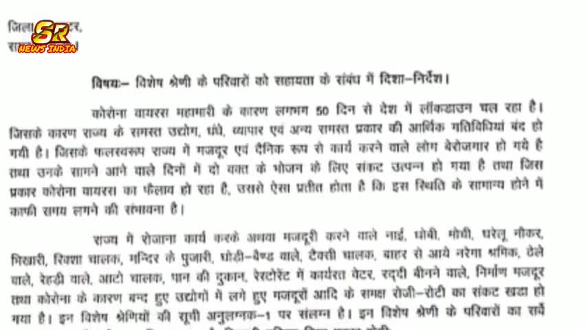 पीपलदा: राजस्थान सरकार खाद्य एंव आपुर्ति विभाग :- विशेष श्रेणी के परिवारों को सहायता के संबंध मे दिशा निर्देश