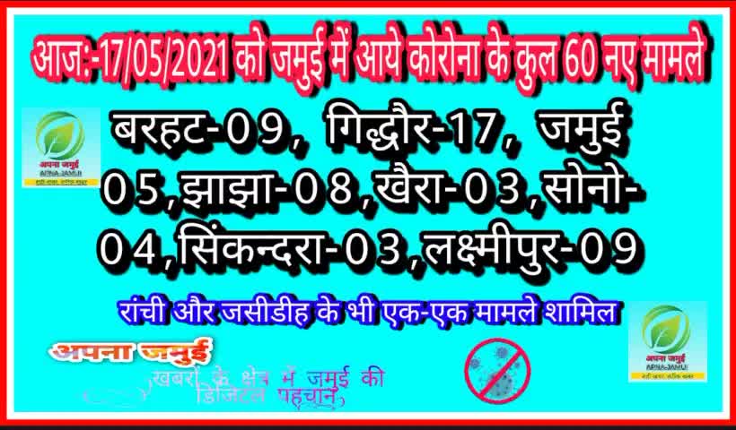 आज जमुई में आये कोरोना में कुल 60 नए मामले