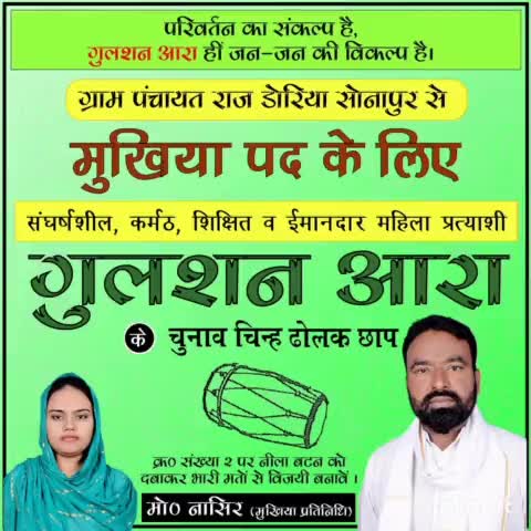फारबिसगंज: मो नासिर जिंदाबाद ढोलक छाप जिंदाबाद गुलशन आरा जिंदाबाद डोरिया सोनापुर पंचायत की जनता जिंदाबाद