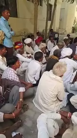 मोर्चरी के बाहर धरने पर बैठे परिजन और गांव के लोग