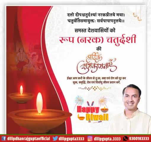 स्वास्थ्य, सौंदर्य, सुरक्षा एवं सुख-समृद्धि के पावन पर्व “रूप (नरक) चतुर्दशी” की हार्दिक शुभकामनाएं।