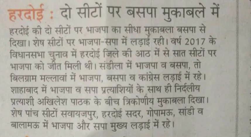 हरदोई में प्रमुख पार्टियों के बीच सीधा मुकाबला समीकरण।