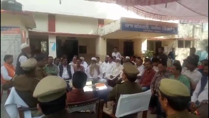 धर्मगुरु और संभ्रांत लोगों के साथ आगामी त्योहारों के मद्देनज़र नगीना थाना प्रांगण में बैठक का किया गया आयोजन। धर्म गुरुओं से रमजान के महीने को लेकर पुलिस क्षेत्र अधिकारी ने विशेष रूप से बातचीत की। सभी से आने वाले पर्व होली को लेकर शांति व स्वार्थ बनाए रखने की अपील की गई है। रमजान व होली एक साथ होने की वजह से विशेष रूप से शांति बनाए रखने पर बल दिया गया है।