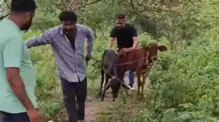 તાલાળા: તાલાલામા ગૌ ભકતોએ ગૌવંશ ભરેલો બોલેરો ઝડપી પાડી તેમાથી 3 ગાય અને 3 વાછરડા સાથે પોલીસ સ્ટેશને પહોચ્યા