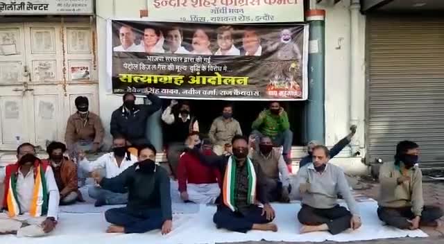 इंदौर: इंदौर# Petrol-Diesel की बढ़ती कीमतों के खिलाफ हुआ सत्याग्रह