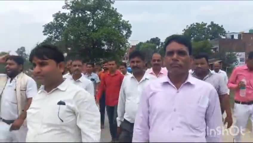बल्दीराय: बल्दीराय बाजार सहित क्षेत्र में पैदल मार्च करते हुए अधिवक्ताओं ने सरकार के खिलाफ की नारेबाजी