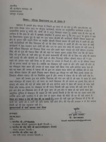संघ के लोगो ने मुखर किया नोएडा सदर विधायक पंकज सिंह का विरोध, लिखी संघ प्रमुख व प्रधानमंत्री मोदी को चिट्ठी , नोएडा में सांसद और विधायक के बीच शीतयुद्ध ।