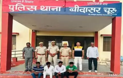 बीदासर। बीदासर पुलिस ने अंतरराज्यीय नकबजन गैंग के चार लोगों को गिरफ्तार किया है। मंगलवार शाम करीब सात बजे प्रेस विज्ञप्ति जारी कर बीदासर सीआई मुकुट बिहारी ने बताया कि 17 सितंबर को बीदासर के दड़ीबा निवासी बीरमलता पत्नी बजरंग लाल यादव ने बंद मकान के ताले तोड़ कर अज्ञात चोरों द्वारा सोने चांदी के गहने चुराने के आरोप का मामला दर्ज करवाया था।