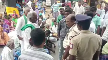 காஞ்சிபுரம் மாவட்டம் உத்திரமேரூர் சட்டமன்ற தொகுதிக்கு உட்பட்ட விச்சந்தாங்கள் பகுதியில் அரசு நேரடி நெல் கொள்முதல் நிலையம் கடந்த சில தினங்களுக்கு முன்பு திறக்கப்பட்டது.இந்நிலையில் அங்கு திறக்கப்பட்ட நேரடி நெல் கொள்முதல் நிலையத்தில் திமுக கிளை கழக செயலாளர் தான் நெல் கொள்முதல் நிலையத்தை நடத்துவார் என அரசு அதிகாரிகள் விவசாயிகளிடம் தெரிவித்ததாக கூறப்படுகிறது. இந்நிலையில் விச்சந்தாங்கள் பகுதியைச் சேர்ந்த 50-க்கும் மேற்பட்ட விவசாய பெருமக்