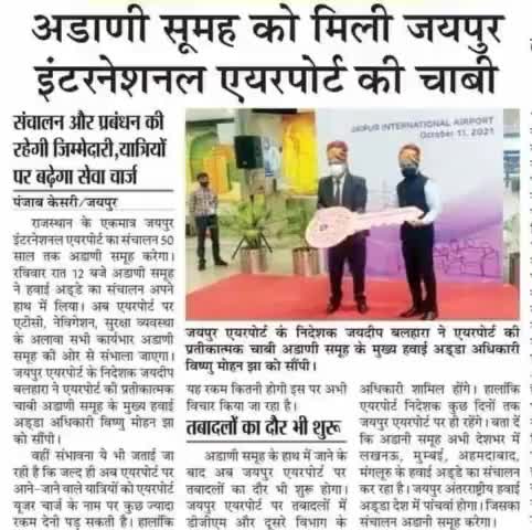 अडाणी समूह को मिली जयपुर इंटरनेशनल एयरपोर्ट की चाबी ?