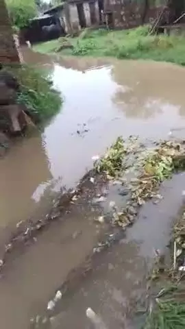 Bhadoli गांव में तेज बारिश के कारण घरों में रोड पर भर पानी