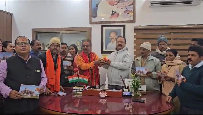 बौंसी :- अयोध्या से आई पूजित अक्षत कलश और आमंत्रण पत्रक अद्वैत मिशन के चैयरमेन अरविन्द मंडावत जी को समर्पित जय श्री राम