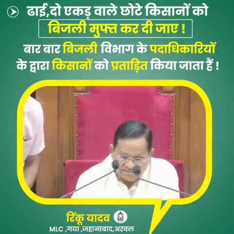 ढ़ाई दो एकङ बाले छोटे किसानों को बिजली मुफ्त कर दी जाए। MLC Rinku Yadav