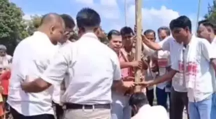 কলগাছিয়া: ফজু বজাৰত নৱম ফজু বজাৰ মহোৎসৱৰ গ্ৰন্থ আৰু বাণিজ্য মেলাৰ লাই খুটা স্থাপন কৰে বিধায়ক জাকিৰ হুছেইন শিকদাৰে