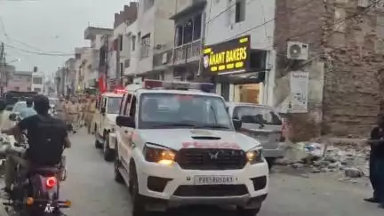 ਅਮਲੋਹ: ਗੋਬਿੰਦਗੜ ਸ੍ ਗੁਰਦੀਪ ਸਿੰਘ ਡੀ.ਐਸ.ਪੀ ਅਮਲੋਹ ਅਤੇ ਇੰਸਪੈਕਟਰ ਸੰਦੀਪ ਸਿੰਘ ਦੀ ਅਗੁਵਾਈ ਚ ਕਢਿਆ ਪੁਲਸ ਫਲੈਗ ਮਾਰਚ