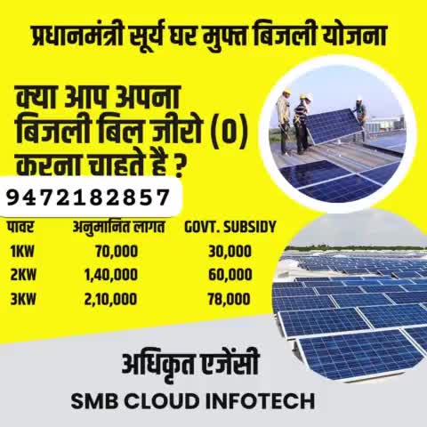 आप अपने घर का बिजली बिल जिरो करना चाहते हैं आप बिजली बिल जिरो करना चाहते हैं तो संपर्क करें 7870339309