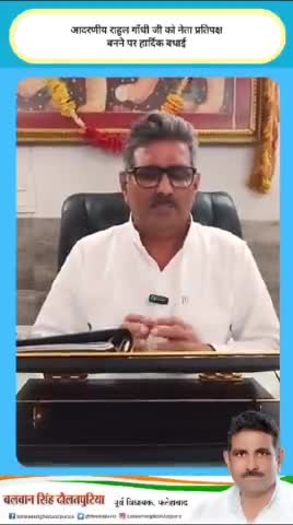 जननायक श्री राहुल गांधी जी को नेता विपक्ष बनाए जाने पर फतेहाबाद के पूर्व विधायक श्री बलवान सिंह दौलतपुरिया ने दी शुभकामनाएं, कहा अब तानाशाह सरकार को घेरने का काम करेंगे राहुल जी,जनता के मुद्दों को और बुलंद आवाज के साथ सदन में उठाएंगे..