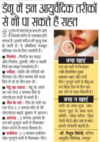 डेंगू मे इन आयुर्वेदिक तरीके से मिल सकती है राहत