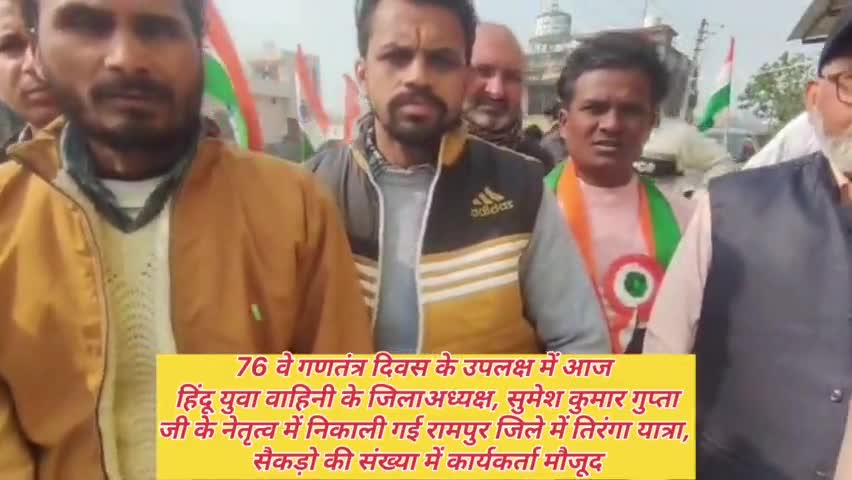 गणतंत्र दिवस पर रामपुर में सुमेश कुमार गुप्ता हिंदू युवा वाहिनी जिलाअध्यक्ष के नेतृत्व में निकाली गई तिरंगा यात्रा