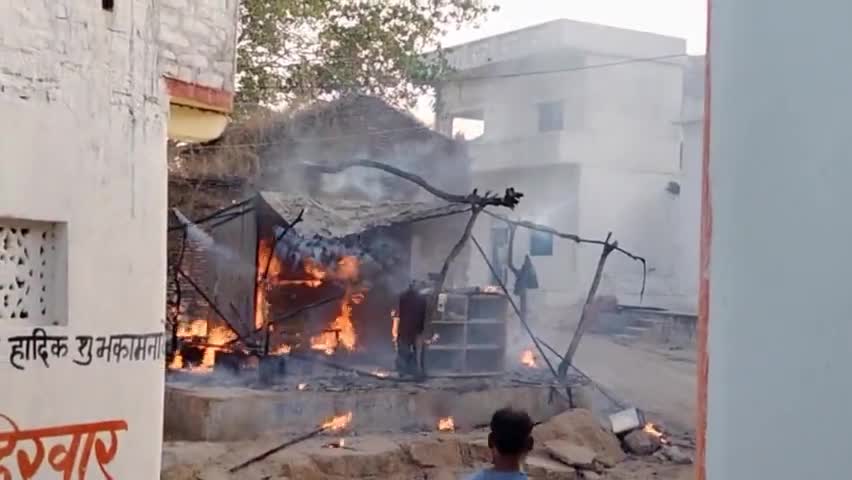 पलेरा: ग्राम घूरा गांव में माधव नायक की दुकान में रखे गैस सिलेण्डर में लगी अचानक आग